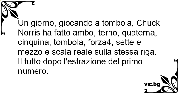 Un giorno, giocando a tombola, Chuck Norris ha fatto ambo, terno, quaterna, cinquina, tombola, forza4, sette e mezzo e scala reale sulla stessa riga. Il tutto dopo l'estrazione del primo numero.