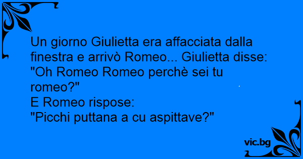 Un giorno Giulietta era affacciata dalla finestra e arrivò Romeo... Giulietta disse: