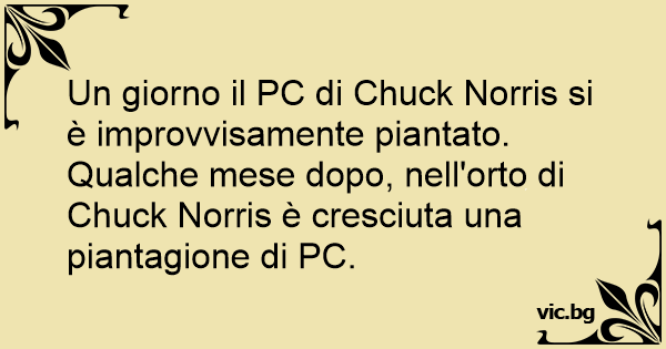 Un giorno il PC di Chuck Norris si è improvvisamente piantato. Qualche mese dopo, nell'orto di Chuck Norris è cresciuta una piantagione di PC.