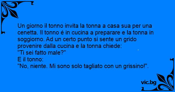 Un giorno il tonno invita la tonna a casa sua per una cenetta. Il tonno é in cucina a preparare e la tonna in soggiorno. Ad un certo punto si sente un grido provenire dalla cucina e la tonna chiede: