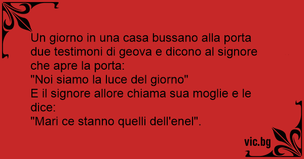 Un giorno in una casa bussano alla porta due testimoni di geova e dicono al signore che apre la porta: