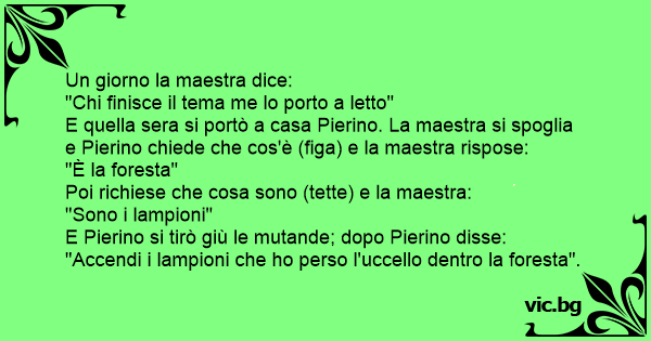 E quella sera si portò a casa Pierino. La maestra si spoglia e Pierino chiede che cos'è (figа) e la maestra rispose: