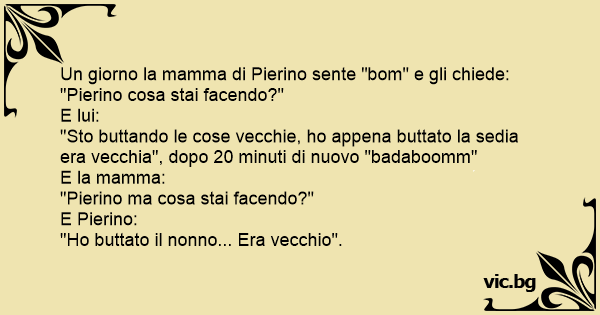 Un giorno la mamma di Pierino sente "bom" e gli chiede: