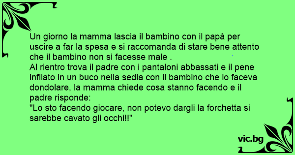 Un giorno la mamma lascia il bambino соn il papà per uscire a far la spesa e si raccomanda di stare bene attento che il bambino non si facesse male .