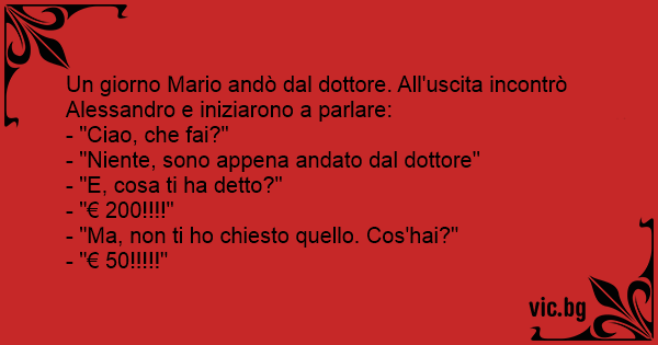 Un giorno Mario andò dal dottore. All'uscita incontrò Alessandro e iniziarono a parlare: