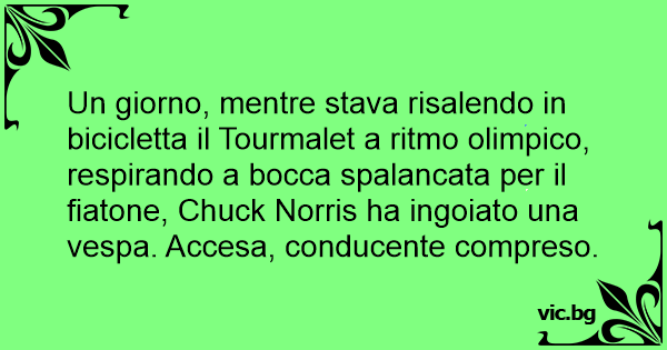 Un giorno, mentre stava risalendo in bicicletta il Tourmalet a ritmo olimpico, respirando a bocca spalancata per il fiatone, Chuck Norris ha ingoiato una vespa. Accesa, conducente compreso.