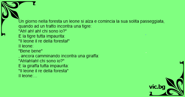 Un giorno nella foresta un leone si alza e comincia la sua solita passeggiata, quando ad un tratto incontra una tigre: