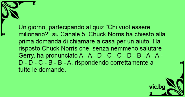 Un giorno, partecipando al quiz "Chi vuol essere milionario?" su Canale 5, Chuck Norris ha chiesto alla prima domanda di chiamare a casa per un aiuto. Ha risposto Chuck Norris che, senza nemmeno salutare Gerry, ha pronunciato A - A - D - C - C - D - B - A - A - D - D - C - B - B - A, rispondendo correttamente a tutte le domande.