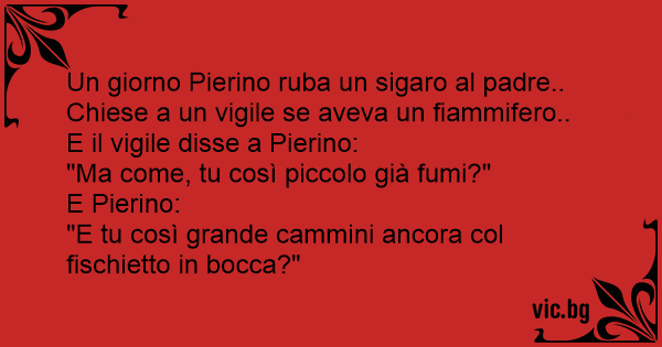 Un giorno Pierino ruba un sigaro al padre.. Chiese a un vigile se aveva un fiammifero.. E il vigile disse a Pierino: