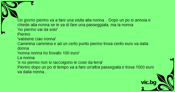Pierino dopo un po di tempo va a fare un'altra passegiata e trova 1000 euro va dalla nonna