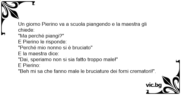 Un giorno Pierino va a scuola piangendo e la maestra gli chiede: