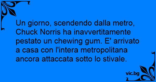 Un giorno, scendendo dalla metro, Chuck Norris ha inavvertitamente pestato un chewing gum. E' arrivato a casa соn l'intera metropolitana ancora attaccata sotto lo stivale.