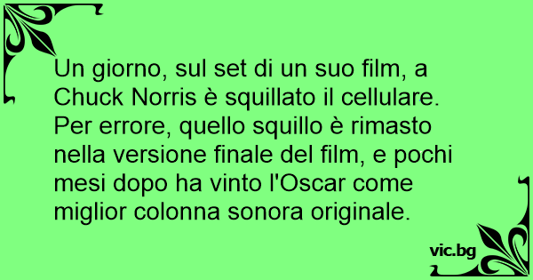 Un giorno, sul set di un suo film, a Chuck Norris è squillato il cellulare. Per errore, quello squillo è rimasto nella versione finale del film, e pochi mesi dopo ha vinto l'Oscar come miglior colonna sonora originale.