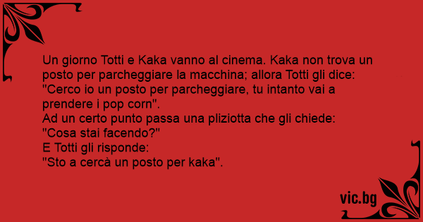 Un giorno Totti e Kaka vanno al cinema. Kaka non trova un posto per parcheggiare la macchina; allora Totti gli dice: