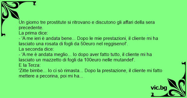 - 'A me ieri è andata bene... Dopo le mie prestazioni, il cliente mi ha lasciato una rosata di fogli da 50euro nel reggiseno!'.