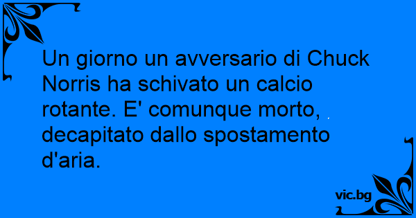 Un giorno un avversario di Chuck Norris ha schivato un calcio rotante. E' comunque morto, decapitato dallo spostamento d'aria.