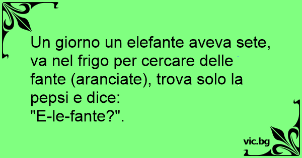 Un giorno un elefante aveva sete, va nel frigo per cercare delle fante (aranciate), trova solo la pepsi e dice: