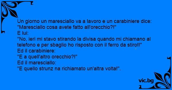 Un giorno un maresciallo va a lavoro e un carabiniere dice: