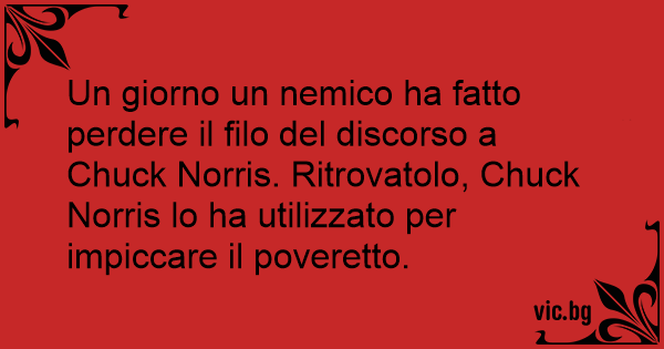 Un giorno un nemico ha fatto perdere il filo del discorso a Chuck Norris. Ritrovatolo, Chuck Norris lo ha utilizzato per impiccare il poveretto.