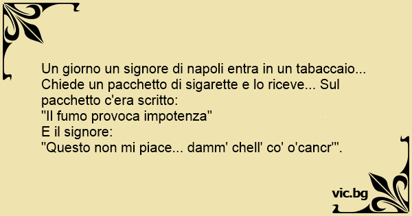 Chiede un pacchetto di sigarette e lo riceve... Sul pacchetto c'era scritto: