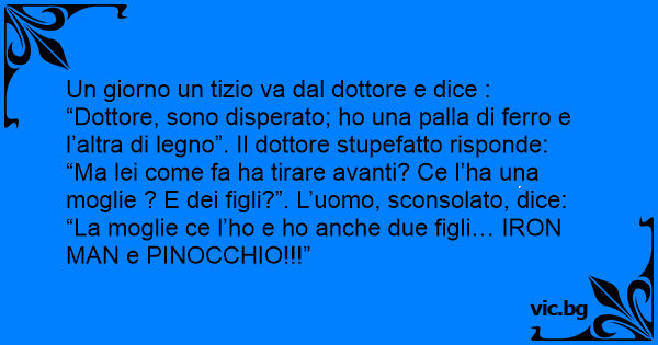 “Dottore, sono disperato; hо una palla di ferro e l’altra di legno”. Il dottore stupefatto risponde: