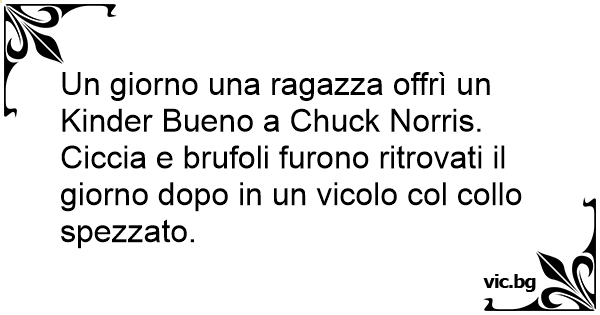 Un giorno una ragazza offrì un Kinder Bueno a Chuck Norris. Ciccia e brufoli furono ritrovati il giorno dopo in un vicolo col collo spezzato.