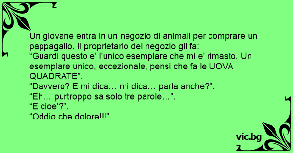 Un giovane entra in un negozio di animali per comprare un pappagallo. Il proprietario del negozio gli fa: