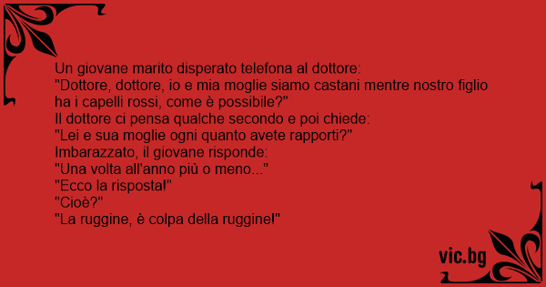 "Dottore, dottore, io e mia moglie siamo castani mentre nostro figlio ha i capelli rossi, come è possibile?"