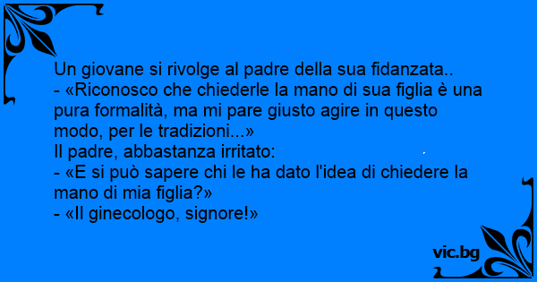 - «Riconosco che chiederle la mano di sua figlia è una pura formalità, ma mi pare giusto agire in questo modo, per le tradizioni...»