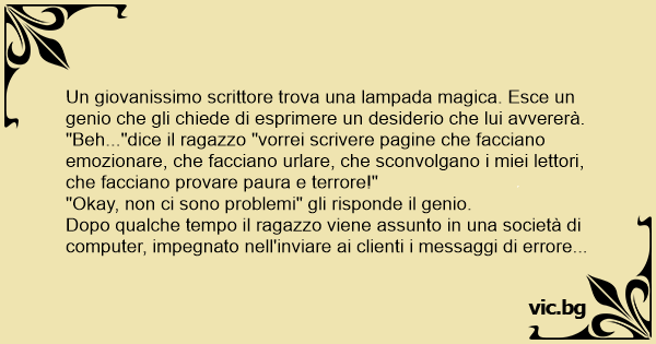 "Beh..."dice il ragazzo "vorrei scrivere pagine che facciano emozionare, che facciano urlare, che sconvolgano i miei lettori, che facciano provare paura e terrore!"