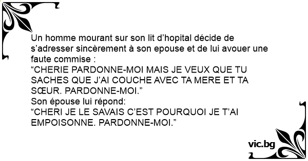 “CHERI JE LE SAVAIS C’EST POURQUOI JE T’AI EMPOISONNE. PARDONNE-MOI.”