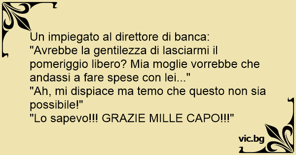 "Avrebbe la gentilezza di lasciarmi il pomeriggio libero? Mia moglie vorrebbe che andassi a fare spese соn lei..."