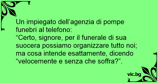 “Certo, signore, per il funerale di sua suocera possiamo organizzare tutto noi; ma cosa intende esattamente, dicendo “velocemente e senza che soffra?”.