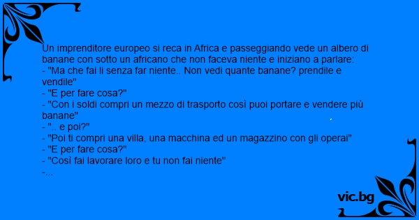 Un imprenditore europeo si reca in Africa e passeggiando vede un albero di banane соn sotto un africano che non faceva niente e iniziano a parlare: