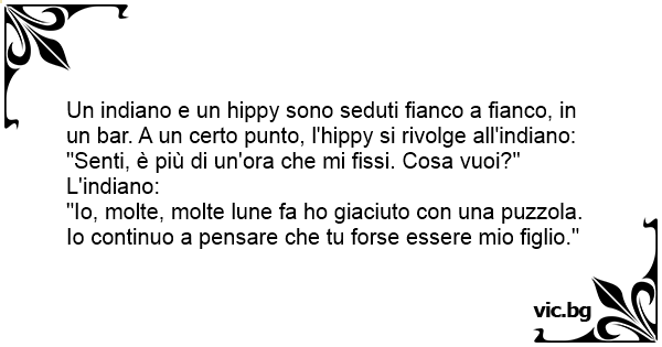 Un indiano e un hippy sono seduti fianco a fianco, in un bar. A un certo punto, l'hippy si rivolge all'indiano:
