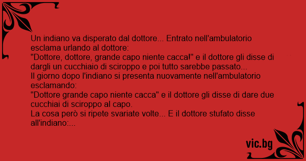 "Dottore, dottore, grande capo niente сасса!" e il dottore gli disse di dargli un cucchiaio di sciroppo e poi tutto sarebbe passato...