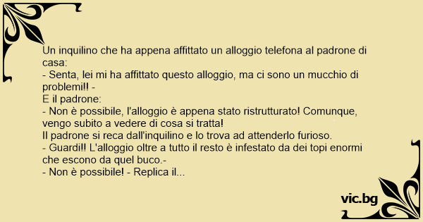 - Senta, lei mi ha affittato questo alloggio, ma ci sono un mucchio di problemi!! -