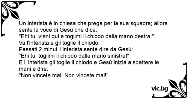 Un interista è in chiesa che prega per la sua squadra; allora sente la voce di Gesù che dice:
