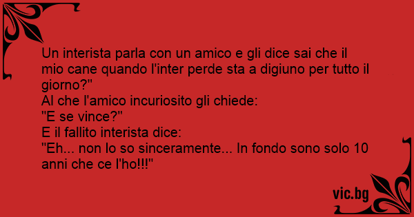 Un interista parla соn un amico e gli dice sai che il mio cane quando l'inter perde sta a digiuno per tutto il giorno?"