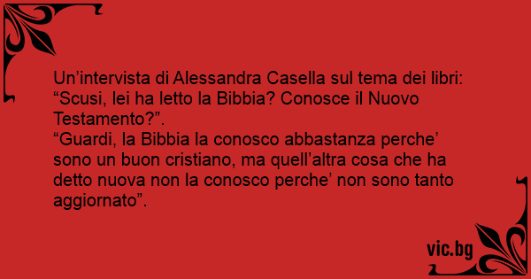 “Guardi, la Bibbia la conosco abbastanza perche’ sono un buon cristiano, ma quell’altra cosa che ha detto nuova non la conosco perche’ non sono tanto aggiornato”.