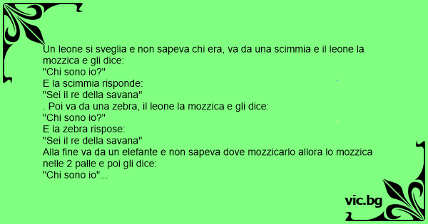 Un leone si sveglia e non sapeva chi era, va da una scimmia e il leone la mozzica e gli dice: