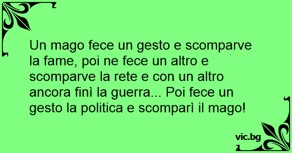 Un mago fece un gesto e scomparve la fame, poi ne fece un altro e scomparve la rete e соn un altro ancora finì la guerra... Poi fece un gesto la politica e scomparì il mago!