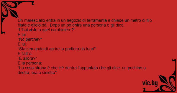Un maresciallo entra in un negozio di ferramenta e chiede un metro di filo filato e glielo dà.. Dopo un pò entra una persona e gli dice: