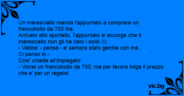 Un maresciallo manda l'appuntato a comprare un francobollo da 700 lire.