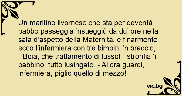 Un maritino livornese che sta per doventà babbo passeggia ‘nsueggiù da du’ ore nella sala d’aspetto della Maternità, e finarmente ecco l’infermiera соn tre bimbini ‘n braccio,