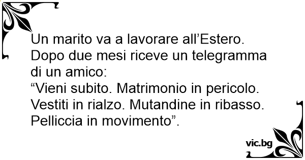 “Vieni subito. Matrimonio in pericolo. Vestiti in rialzo. Mutandine in ribasso. Pelliccia in movimento”.
