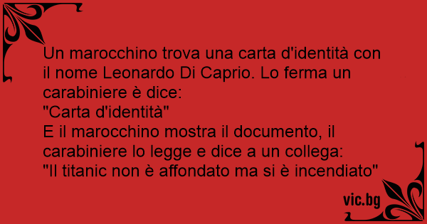 Леонардо Ди Каприо Ο Καρεμπέ Един циганин отива в рая и на вратата го посреща Св. Τιτανικός. Un negro trova la carta d'identità di leonardo di caprio. Due carabinieri fermano una Ferrari guidata da un nero molto distinto per un controllo di routine. L'automobilista accosta e uno dei due carabinieri chiede: “Fornisca patente e libretto d circolazione per cortesia.” Il conducente presenta quanto richiesto e risulta tutto in ordine. Il capo... Due Carabinieri fermano per un normale controllo una Ferrari con un negro molto distinto alla guida. - Documenti per cortesia... Il conducente presenta patente e libretto di circolazione,... San Pedro le pregunta a Barack Obama. - Nombre? - Leonardo Di Caprio, contesta don Barack. San Pedro lo mira incrédulo y le vuelve a preguntar su nombre... - Leonardo Di Caprio, insiste Barack. San... Un hombre negro que llega a las puertas del cielo y le pregunta a San Pedro, ¿Puedo entrar a tu casa? - Tal vez sí, ¿cuál es tu nombre? - Leonardo Di Caprio. - ¡¿Cómo?! - Leonardo Di Caprio.... O cara era negro e o maior ladrão e derrepente foi atropelado por um carro e morreu quando se deu conta estava numa fila na porta do Cêu e São pedro estava fasendo uma triagem para saber quem... Chega no céu um negão, vestido de terno branco, todo engomado, e São Pedro perguntou: — Pois não, quem é você? O negão respondeu: — Leonardo di Caprio. São Pedro olhou bem para ele, consultou a... Zencinin biri Türkiye'ye gelecekmiş. Gelmek üzere yola çıktığında pasaportunu kaybettiğini anlamış. Üzgün üzgün yürürken yerde bir pasaport bulmuş. Üzerinde leonardo di caprio yazıyormuş.... Un negrito se murio y llego ala entrada del cielo y le prergunta san pedro ¡nombre! Leonardo d´caprio y sampedro confundido ledise Al negrito un momento y seda la vuelta y ¡¡llama a jesus y ledise... Era un negro que estaba formado para la entrar al cielo (el negro había escuchado que San Pedro era racista) y en efecto, lo confirmó cuando vió que San Pedro mandaba a los negros al infierno...... Zemře černoch a dostane se do nebe ke svatému Petrovi. Petr se ho ptá: - ”Jak se jmenuješ?\” Černoch, v obavě že v nebi jsou rasisti, řekne: - ”Leonardo Di Caprio.” Petr se zamyslí a znovu se ho... Un Sénégalais noir comme du charbon, arrive à la douane avec un faux passeport. Tellement faux que la photo sur le passeport est celle de Léonardo Dicaprio. Le douanier observe le passeport pendant... O negao morreu e, estava na fila p/ entrar no ceu. O secretario de Sao Pedro deu um vassilo e o negao viu a lista de chamada, ao notar que seu nome nao estava la., aplicou uma viu o primeiro nome e... No céu Sao Pedro estava atendendo as pessoas mortas que estavam no titanic . Entao um negao aparece e Sao Pedro pergunta :_ Qual é o seu nome? e entao o negao responde:_ Leonardo Dicaprio. Sao... O negao chegou no ceu, e falou pra são pedro. Cade deus e sào pedro disse: esta dormindo, são pedro perguntos. Qual seu nome? ele respondeu: Leonardo di caprio. São pedro desconfio e foi tirar uma... Um negao acaba de morrer e vai para o céu... Chegando la nos portoes,,o cara lhe pergunta: — _Quem e vc? E o negao responde: — _ Sou leonardo de capril. — _tem certeza? — _claro. — _ah,entao vou... Um negão no céu. Aí Sãõ Pedro perguntou: — Qual seu nome? O negão respondeu: — Leonardo de Capriu. Então São Pedro foi perguntar para Deus se o Titanic tinha afundado ou pego fogo Uma vez um negão morreu e foi pro céu chegando lá bateu na porta São Pedro, o atendeu e perguntou: — Quem é? E ele respondeu: — Leonardo di Caprio. São Pedro disse: — Espere um minutinho só! E em... Morreu um negão,mas bem negão mesmo, aí chegando lá no céu, tinha um aviso: Só entrará negão, se for famoso ou se fez um bem na terra. Aí o negão pensou: — Ih, caramba só matei, roubei, fiz mal as... No céu, chega um homem bem moreno e são pedro lhe pergunta: — Quem é você? Ele diz: — Eu sou leonardo di capri então são pedro sai e vai falar com deus: — Vem cá, deus, o titanic afundou ou pegou... Sabe aquele negrão forte do BBB2004, ele morreu e foi para o céu, chegando lá encontrou São Pedro na porta fazendo o controle dos recem chegados, e ai ... São Pedro, perguanta a ele, qual o seu... Um dia desses Bussunda apareceu no céu morto. E São Jorge perguntou: — Qual é o seu nome? E o Bussunda respondeu: — Leonardo de Caprio. São Jorge: — O São Pedro me dá uma ajuda aqui o titanic... Un nero muore e arriva in paradiso. Bussa alle porta quando viene ad aprire San Pietro. San Pietro scruta il nero, emette una smorfia di disgusto e gli chiude la porta in faccia. Il nero rimane li’... Amerika'da zencinin biri pasaportunu kaybetmiş. tamda Turkiye'ye tatile gideceği gün. aksilik bu ya... Ucağı kaçıracak, kara kara düşünürken yolda bir pasaport bulmasın mı ?!.. Hemen almış yerden,... Zencinin biri Amerika'dan Türkiye'ye gelecekmiş. Yola çıktığında pasaportunu kaybettiğini anlamış. Uçağı kaçırma korkusuyla kara kara düşünürken yolda bir pasaport bulmuş. Bir bakmış ki Titanik... Un negru ajunge in Ceruri, cu frica-n san ca nu o sa fie primit in Rai din cauza problemelor rasiste... - Numele? intreaba Sf. Petru. - Leonardo Di Caprio - raspunde negrul. Sfintul Petru il... Prie dangaus vartų ateina negras. - Kas toks būsi? – klausia Šventas Petras. - Leonardo Di Kaprio! Sutrikęs Šventas Petras kažkam skambina: - Alio, šefe, aš kažko čia nesuprantu. „Titanikas“... Ateina negras prie dangaus vartų. Šv. Petras klausia: - Sakyk savo vardą. Negras: - Leonardo DiCaprio. - Sakyk tikrą savo vardą,- supyko Petras. - Taigi sakiau Leonardo DiCaprio,- atkerta negras....