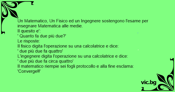 Un Matematico, Un Fisico ed un Ingegnere sostengono l'esame per insegnare Matematica alle medie.