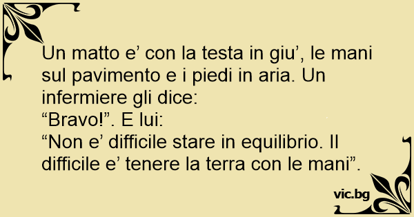 Un matto e’ соn la testa in giu’, le mani sul pavimento e i piedi in aria. Un infermiere gli dice: