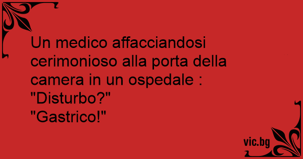 Un medico affacciandosi cerimonioso alla porta della camera in un ospedale :<br />"Disturbo?"<br />"Gastrico!"